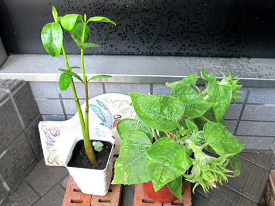 おりょ?と探してみると、なんと向日葵の苗の前で腕を組んでる。