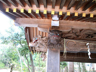 手水舎の上にはこんな可愛い獅子?狛犬?