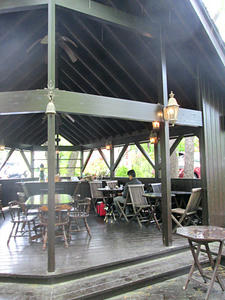 もう人も少なくなっていましたが、寒くはなかったので、二匹と一緒に屋根のあるデッキで食べることにしました。