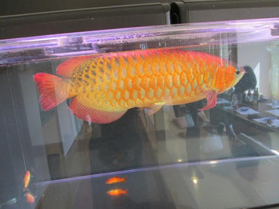 60cm以上はあるアロワナのでかい水槽がふたつ、目の前に。