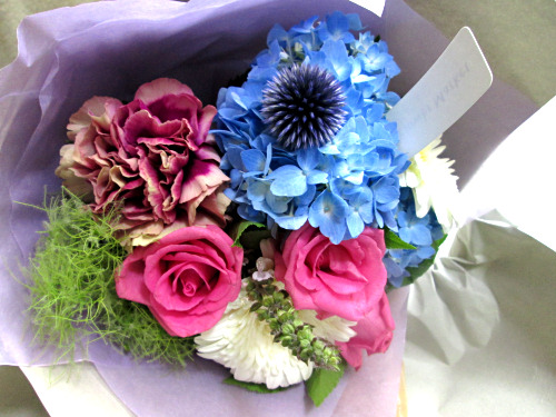 今日も仕事なのに、遅れて来てくれたB君にお花もいただきました。