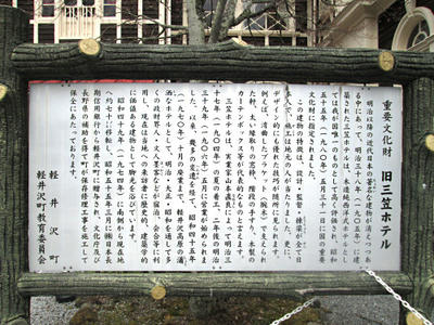 当時は「軽井沢の鹿鳴館」としてその名を馳せた明治後期の純西洋式の木造ホテル”旧三笠ホテル”です。