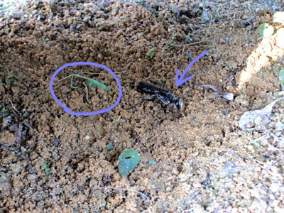 器用に両手で土をつかんで虫の上にかけていきます。穴は結構深く、大きい。それを二つ、三つ掘ったところで、音をたててどこかへ飛んでいきました。