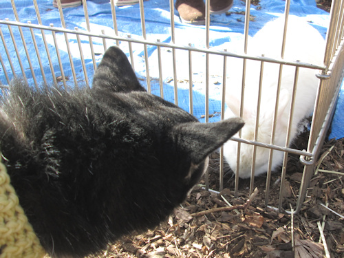 しかし、うさぎちゃんは犬なんか全然平気。笑