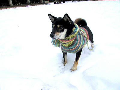 前日適当に編んだおニューのセーターで。
