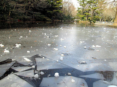 しかし、池に行ってみると…凍ってる!