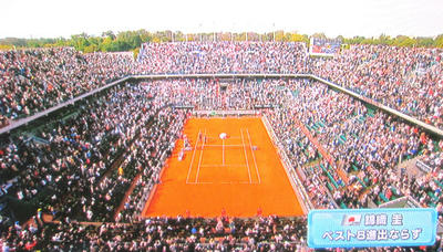 一週目のパリは本当に寒く、雨も降り、観客の人たちもすっかり冬の服装でした。そのせいかどうか、精神状態を含めてコンディションは今ひとつ…と見えましたが、錦織くんとの四回戦では実力の差を見せつけました。