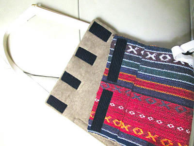 裏地は竹布、表との間にはマイナスイオンシートをはさみました。かなり頑丈です。