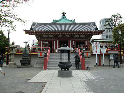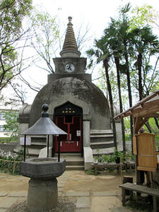 昭和42年に建てられたもので、中には薬師如来、左側に月光菩薩、右側に日光菩薩を安置してあります。この薬師三尊像は、江戸末期まで東照宮境内にあった薬師堂のご本尊で、明治初期の神仏分離令によって寛永寺に移され、パゴダの本尊として迎えられたそうです。