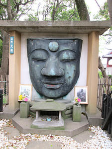 明暦~万治年間(1655~1660)には、江戸市民からの浄財によって三メートル六十センチをこえる青銅製の堂々たる釈迦如来座像を造立。その後、十一年(1698)、風雨から覆うための仏殿を建立。天保十二年(1841)の火事によって大仏・仏殿ともに被害を受けたが、一年半後の天保十四年には、大仏は修復され、幕府が仏殿を再建。さらに、安政二年(1855)の大地震では大仏の頭部が倒壊したものの、間もなく修復。 しかし、上野公園開設の際に仏殿が取り壊され、大正十二年の関東大震災では大仏の頭部が落下、さらに第二次世界大戦における金属提出令により大仏の体・脚部を国に提出したため、面部のみが寛永寺に遭った。