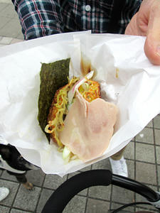 屋台のおばちゃんに聞いたところ、海鳥だそうです。これがかなり獰猛で、カラスや鳩は追っ払っちゃうんだそう。いくつも海鮮の屋台がありましたが、やっぱり油断をすると持っていかれるんだそうです。