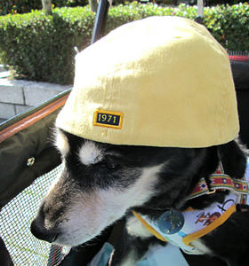 土曜日の嵐が過ぎ去った後の日曜日はピーカンでした。こんな日はゆっくりと長いお散歩。ただ風が少々強かったので、昨年購入したネフティー用の車を出しました。