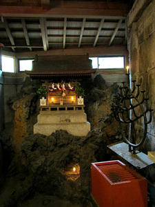 今でも旧社殿に石窟が残っています。上野山に寛永寺が建てられるとき、ここに棲む狐たちの住処が無くなるのを憐れみ、社を建てて祀ったのが始まりといわれています。