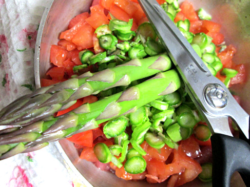今日作ったのは、まぐろとトマトとアスパラ。これを煮れば出来上がり。