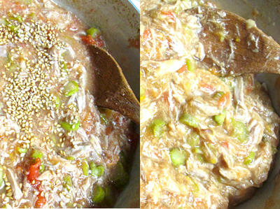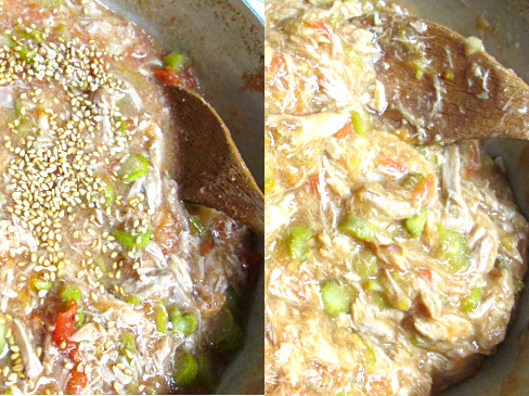 水を多めにいれて煮た後に、計算した分のフレークを入れると水分を吸ってくれるので保存もしやすくなります。