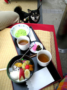 山の上で散々走り回った後なので、おやつもらうだけ。