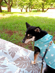 今日のアンクの服は、メッシュ素材のウォータークールクロスで作りました。