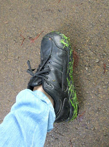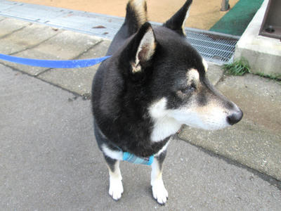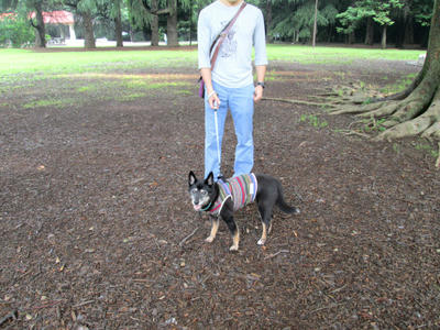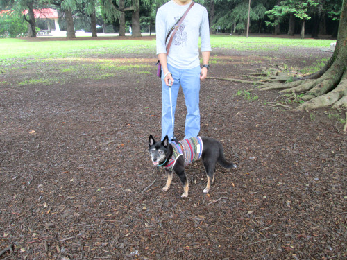 今日は草がびしょびしょだったので、アスファルトの道を長く歩いたせいか、ナイルはちょっとお疲れ気味。