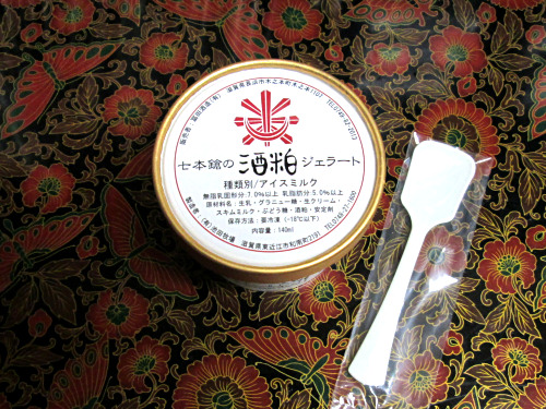 金沢にある妹のお店コラボンに寄った時、黒板メニューに酒粕ジェラートと書いてあるのを見つけて味見をさせてもらいました。
