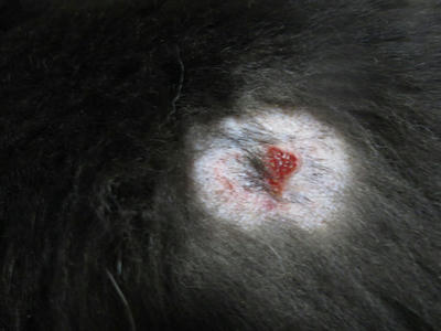 結局、毛を刈り取られ、消毒してそこにもオゾンクリーム。
