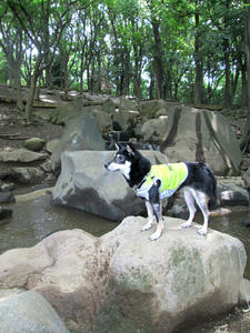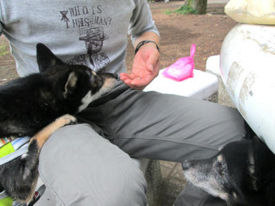 いつもの公園で、冷やした犬用ゼリーを堪能。