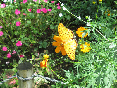 今日もたくさん蝶を見ましたが、同じ色の花にとまった蝶々。