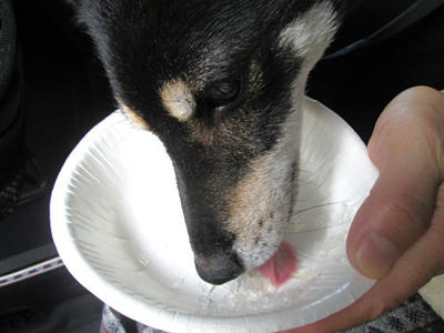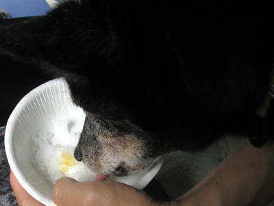 外ではほとんど水を飲んでくれないアンクですが、かき氷はばくばく。