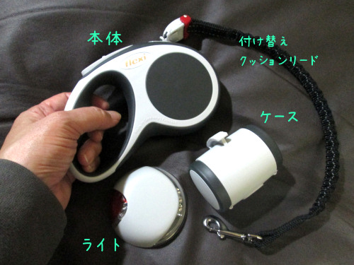 アンクはしばらく普通のリードで練習していましたが、だいぶ慣れてきたので、広いところで少し自由に駆け回れるよう、新しい伸びるリードを新調しました。