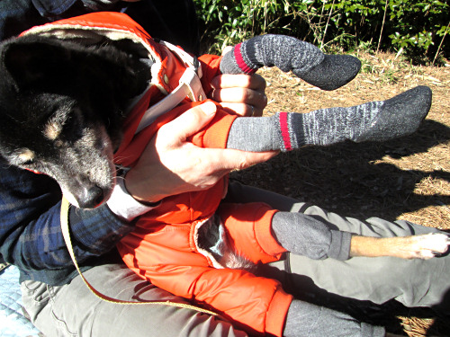 ナイルの防寒用と思っていましたが、履いてくれると脚を拭かなくてすむのもメリット。