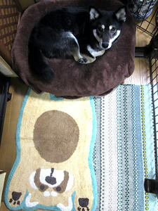 ついでに、以前より多めに敷いて、コルクとカーペットでナイルが歩きやすいようにしました。