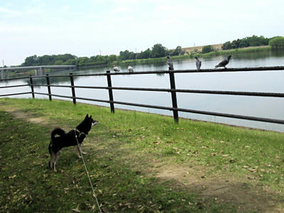 彩湖で鳩を見つけたアンク。