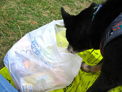 ナイルはごみ袋を漁り…って、こらっ。