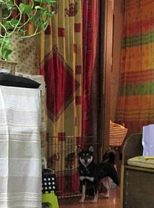 シェルターから環境の違う場所に連れてこられて、神経質に部屋中を嗅ぎまわります。