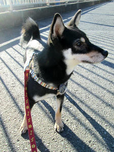 朝から騒いでいるので、いつもの散歩コースに連れて行きました。
