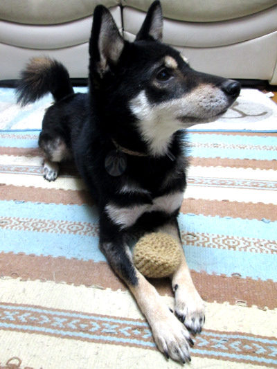今、ちょっと大きめのものを編んでいるのですが、合間にボールを作ってみました。
