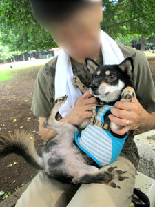 最終日、ダンナが会社に行く前に、早朝に二匹を連れて公園に行きました。