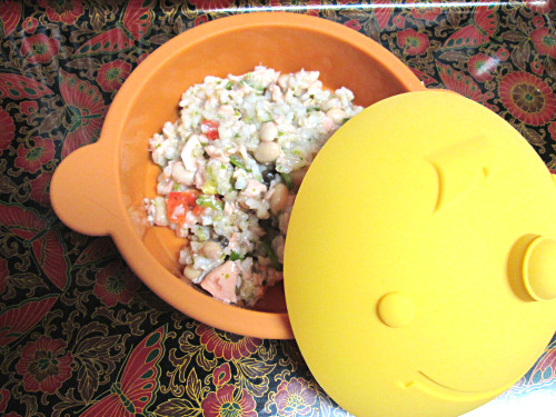 通常ならギリギリ問題ない大きさだし、へりに高低がついていて食べやすいのですが、水分を採らせるためにスープ状にするため、低いところに合わせるとあまり水が入りません。