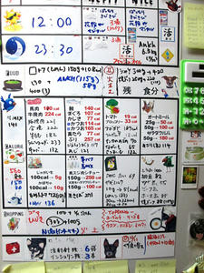 ということで、私ひとりならホワイトボードも必要ないのですが、ダンナがご飯をあげるときのために作りました。