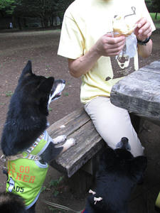 そう言えば、帰り際に日陰の木のテーブルで氷を食べていたのですが、近くにいた小さい子供を連れた家族の親が、虫取り網で蝉を捕っていました。