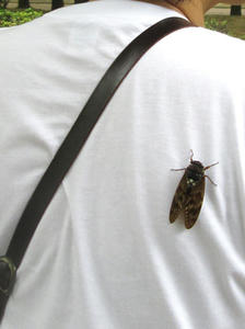 蝉はクライマックスを迎えたような騒々しさでしたが、歩いていると私のまわりを一匹の蝉が…。