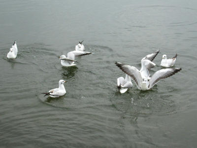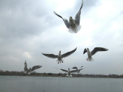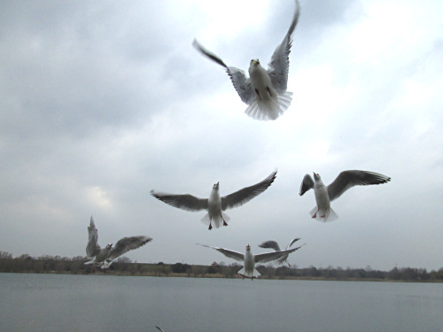 食べ終わって気がつくと、そこにはたくさんのカモメが!