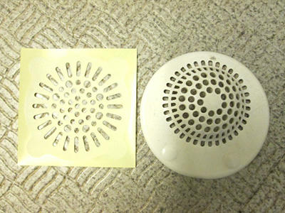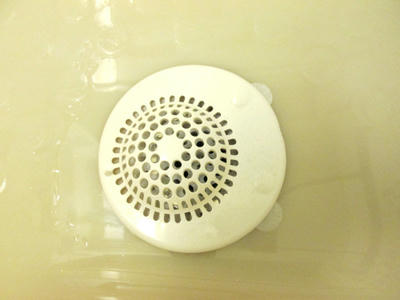 まずシール状になっているものを、タブを取った浴槽の排水溝に貼ります。