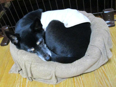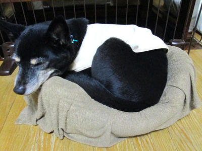 こうやって体を小さ~くして、寝るんですよ、ナイルが。
