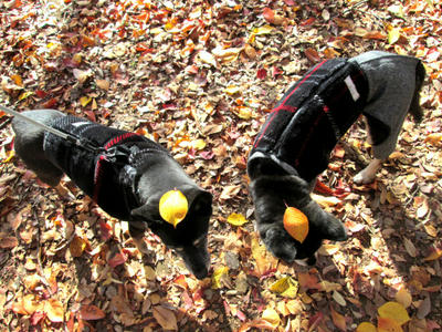 冬になるとカサカサになってしまう落ち葉も、まだ湿り気があって色もきれい。