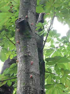 さて、セミの声もだんだん大きくなって、やっと大きな殻の一号を見つけました。