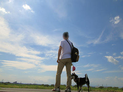 橋を渡って土手に上がると、大空は君たちのものだっ。
