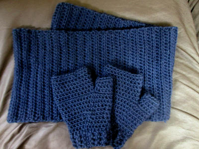 薄いピンクで上と同じ手袋とスヌードをセットにしました。
