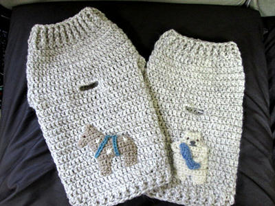 先日一枚編んでみましたが、それを叩き台にして、もう一枚カバーオールを編みました。