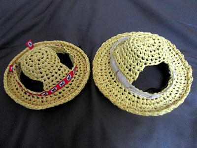 昨年の夏には、犬サイズの普通の麦わら帽子を編みました。
