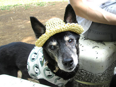 人によっては、なんだ、犬に帽子なんか…と思うでしょうけど、黒い犬には結構悩みがあるんですぅ。